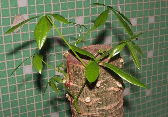 注意:修剪后的枝條,不要淋雨和噴水,防止腐爛,將修剪后的發(fā)財樹放在光線比較明亮的地方或是樹蔭下,要求控制澆水,因為整株上沒有葉片的蒸騰,水分的需要就少了。如果澆水過多會腐爛根系,導致修剪復壯失敗??稍诎l(fā)芽前施用1-2次以氮肥為主的復合肥料,如20-10-10的復合肥料。并且在此期間澆灌一次殺菌劑來防治根系腐爛,如內吸性的50%多菌靈可濕性粉劑800-1000倍液,一個月后小枝條就長至5厘米左右,兩個月即可能觀賞。